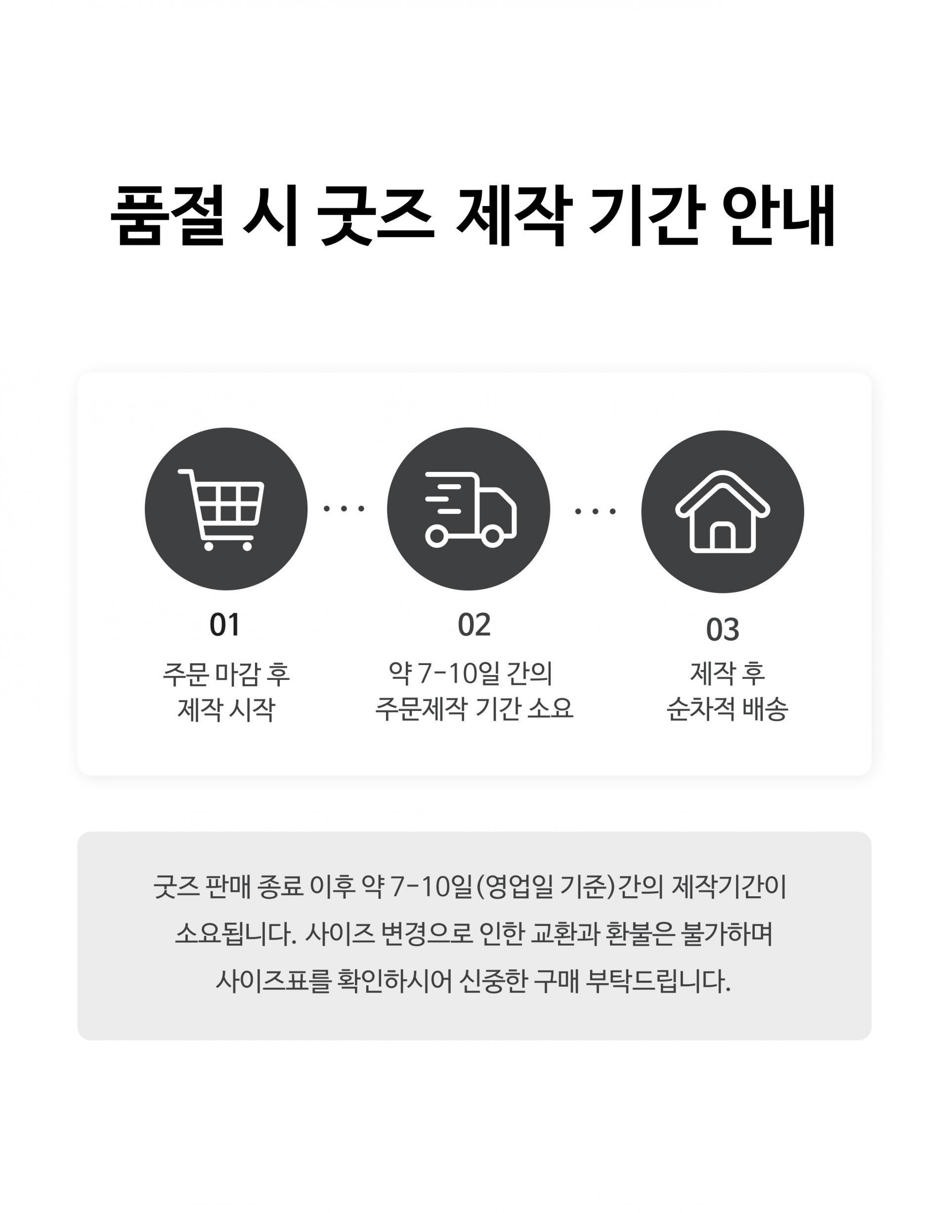 - 고객 변심으로 인한 교환/반품은 상품 수령 후 7일 이내 가능합니다.